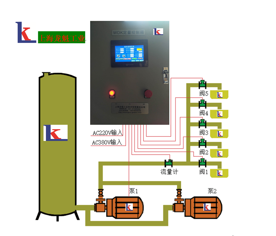 ? ? ???上海龍魁工業(yè)技術(shù)有限公司的文本式PLC可編程定量控制柜、?LKD觸摸屏PLC變頻定速定量控制柜、WDK文本式PLC可編程定量控制柜及文本式PLC可編程定量控制柜系統(tǒng)、WDK型文本或觸摸屏式PLC定量控制系統(tǒng)、WDK文本式觸摸屏PLC定時(shí)定量恒量控制柜(箱)、WDK文本式觸摸屏PLC帶打印變頻恒量控制柜(箱)、WDK觸摸屏PLC定量灌裝控制系統(tǒng)、WDK觸摸屏PLC定量配發(fā)料控制系統(tǒng)的其他定量控制配套產(chǎn)品都要根據(jù)現(xiàn)場(chǎng)流體的物理/化學(xué)屬性、周圍環(huán)境、以及具體要求來(lái)選擇合適的高精度流量計(jì)(如電磁流量計(jì),渦輪流量計(jì),齒輪流量計(jì),質(zhì)量流量計(jì)等)來(lái)測(cè)量流量,?根據(jù)測(cè)量介質(zhì)、管道口徑、流量范圍、控流量大小、電機(jī)與泵的速度、防腐、防爆、防護(hù)等級(jí)等參數(shù)和要求進(jìn)行設(shè)計(jì)及配置選型WDK文本式或觸摸屏定量控制柜(箱)及WDK文本式或觸摸屏定量控制系統(tǒng)